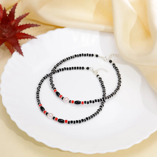 Coming from the culture of varied ancient countries, combination of red and black has always been fascinating. This red and black bead anklet is a traditional evil-eye , that has been been used since ancient times. To give it a glittery look, TWEOV has come up with new twist of...