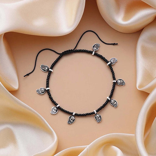 Whether you're aiming to make a fashion statement or seeking to add a touch of cultural richness to your ensemble, the Amba Charm - Black Beads Oxidized SILVER Anklet is the perfect accessory. It goes beyond being a piece of jewellery; it's a representation of heritage and a celebration of...