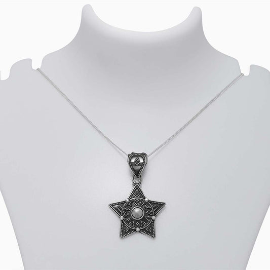 This attractive star necklace silver is ideal to add that little something extra to your regular or party attire. The oxidized star shape renders it fashionable and distinct in a sense, thereby suiting Indian as well as western clothes alike. It goes well with a sari, suit, kurti, jeans, or...