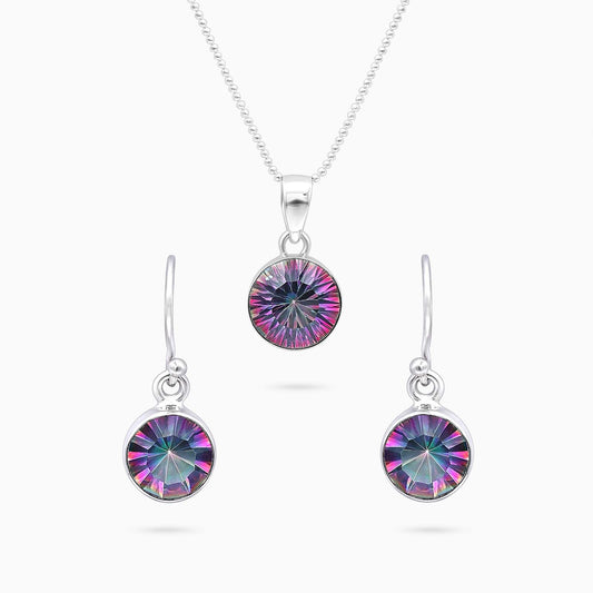 The geometric jewelry set comes with minimalist necklaces and bracelets that share linear shapes that fit any modernist design. These pieces can be worn casually or formally and are of great quality. Our pure silver pendant set with multi-color circle earrings is minimalistic and elegant and has a round-cut design, suitable for women who adore minimal luxury.
