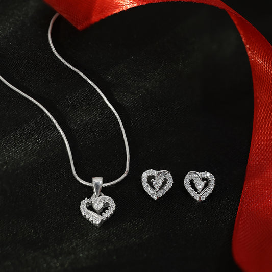 Trendy but traditional, Tweov’s silver jewelry set designs come with finely polished surfaces. These sets often consist of fine chains, pendants, earrings, small studs, and rings perfect for everyday outings. Have a look at our pure silver pendant & earrings set with heart charms and gemstones – a classy jewelry set that can capture the hearts of many women.