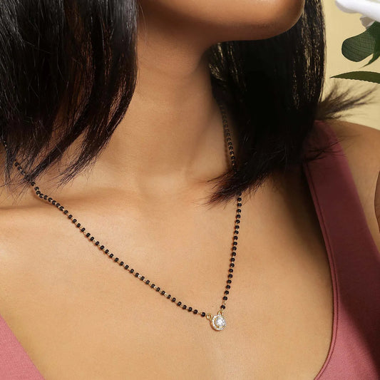 Silver is a shiny and lustrous metal by nature and can go well with both traditional or trendy outfits. The silver mangalsutra can be matched perfectly both for Indian clothing and Western dressing style, so the wearer can choose it for both work and for celebrations. Whether worn with a beautiful saree at a wedding or with a formal business wear suit, the sassy accentuated outcome of mangalsutras adds elegance to any attire.