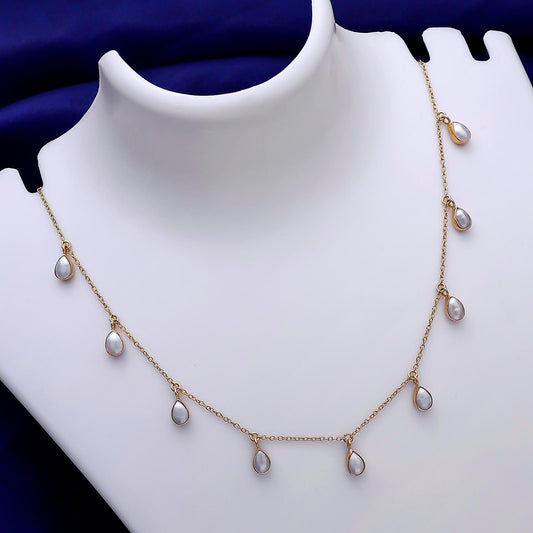 The Gold-Plated Drop Pearl Necklace has a stylish design made of 925 sterling silver. It features a rope chain adorned with several drop-shaped pearls set in silver frames with a gold finish. Tweov created this chain necklace with nature-inspired elements and a golden treat to wear around your neckline. It...