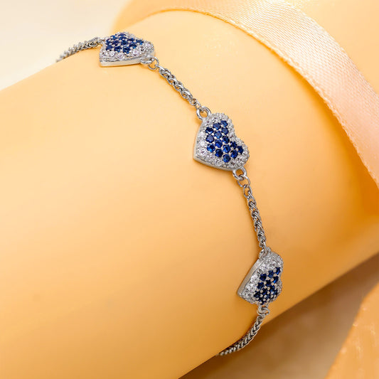 Pure 925 Sterling Silver Blue White Heart Chain Bracelet is made of 925 sterling silver and gracefully designed for women who value fine detailing and love heart charms. The silver chain bracelet features several blue and white cubic zirconia stones embedded in a heart-shaped silver frame and set on a...