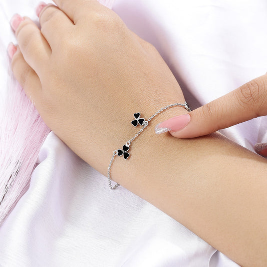 The Pure 925 Sterling Silver Black Clover Leaf Chain Bracelet has a delicate design featuring three petals, three clover leaves adorned with black enamel set on a delicate rope-style chain crafted from pure 925 sterling silver and polished with a high-quality rhodium, adding a royal touch. Tweov designed this silver...
