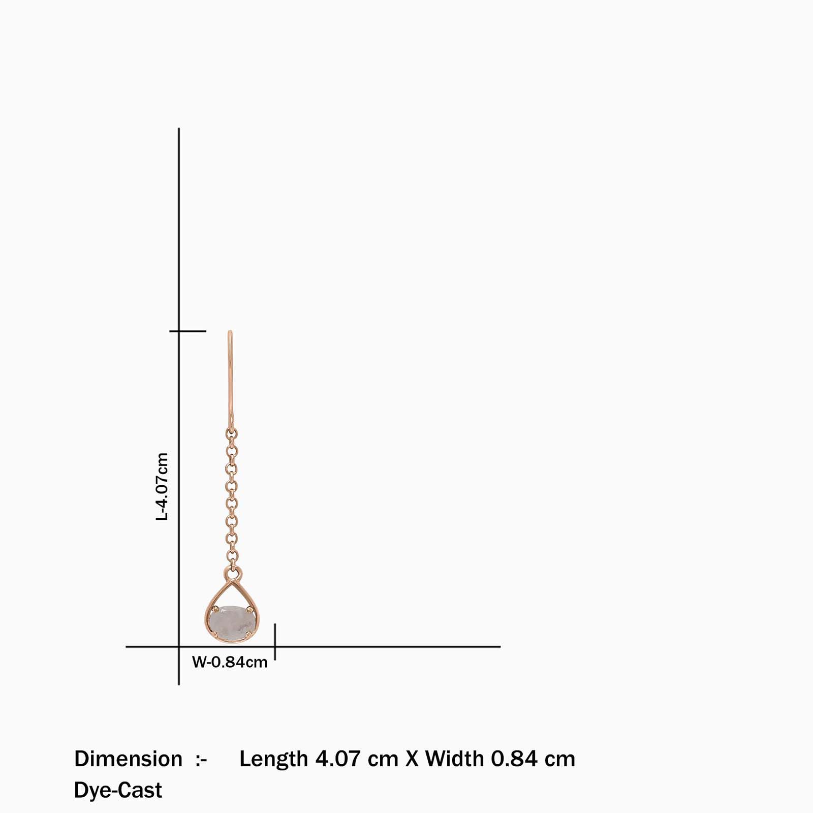 The material ensures a lightweight yet durable design, making these earrings suitable for both daytime sophistication and evening glamour. Whether you're attending a formal event or looking to elevate your everyday ensemble, these earrings are the perfect finishing touch. Elevate your look and embrace the elegance of the Moonstone Rose Gold Long Drop Earrings.