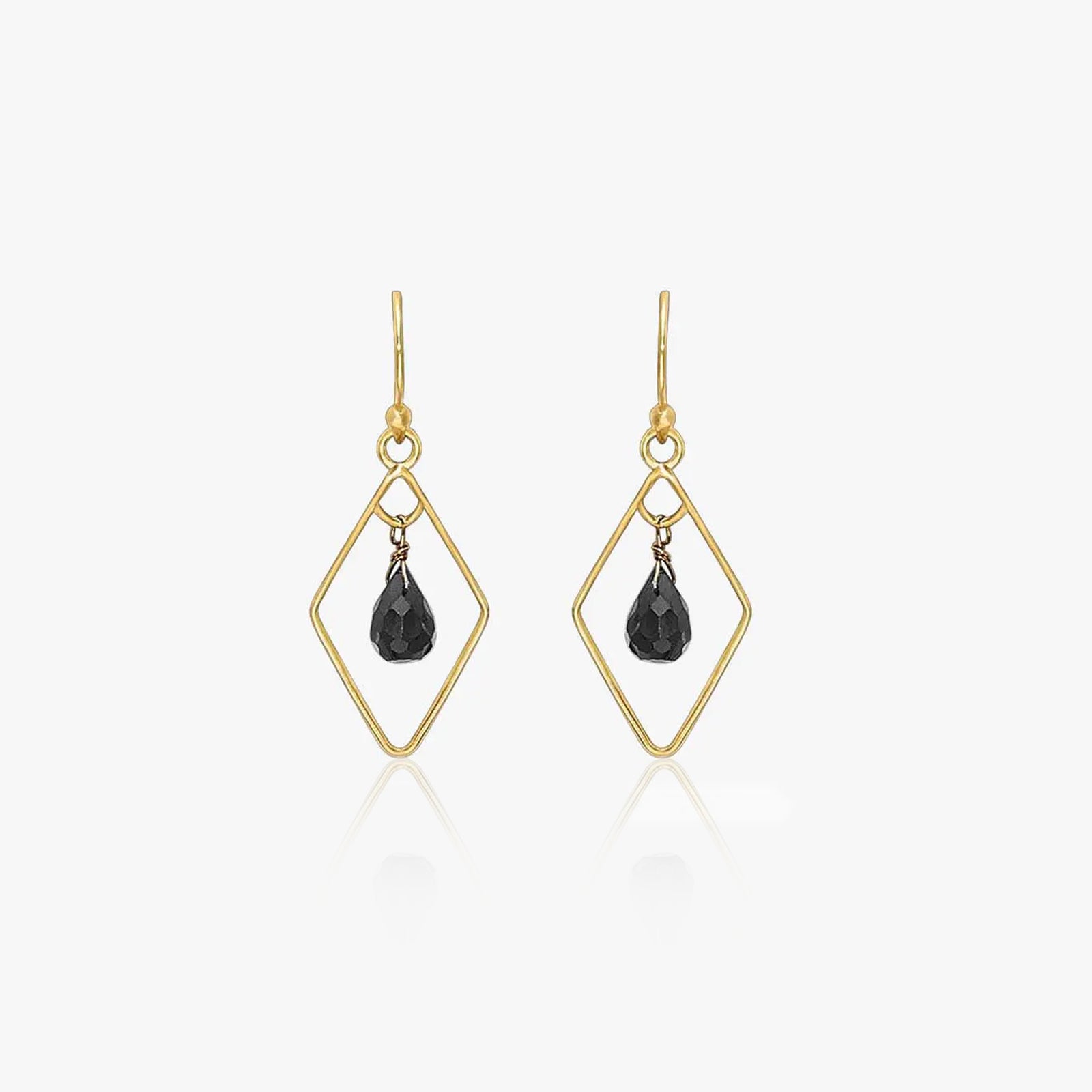 The sleek and modern gold earrings with black onyx feature a fusion of geometric shapes, creating a visually captivating and stylish accessory. The use of high-quality gold adds a touch of opulence, making these earrings suitable for both casual and formal occasions.