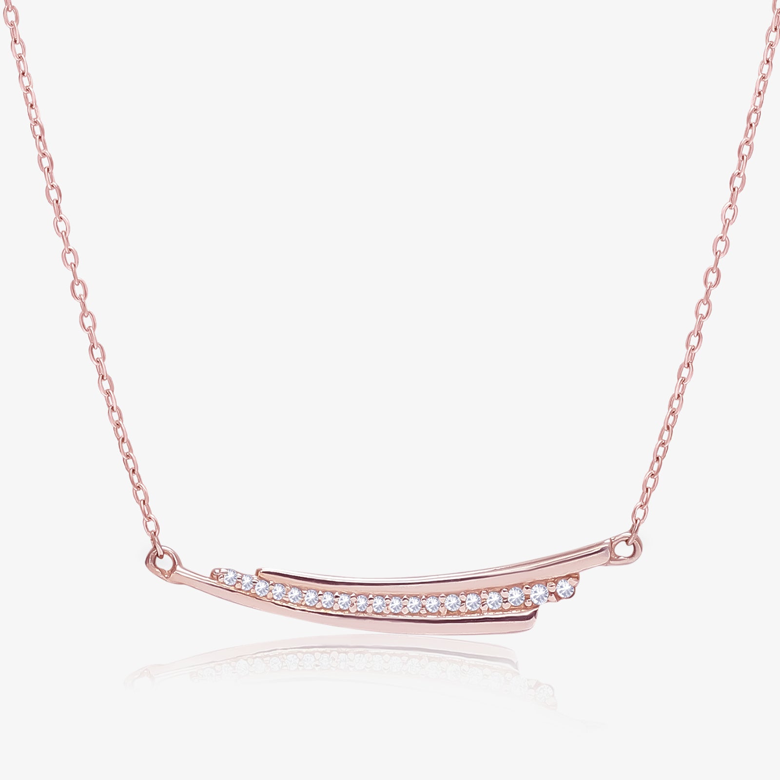 The Rose Gold-Plated Double Bar Silver Necklace is a luxury design with a delicate look. This silver necklace features a rope chain with a spring ring lock and a cubic zirconia-studded double bar pendant made of 925 sterling silver with a rose gold finish. Tweov created this necklace for women to make their necklines glow with a rosy shine, give them a blushy look on their faces, and make them radiate as she wants. You can wear it on occasions such as parties, outings, Raksha Bandhan, Diwali, Dhanteras, Bhai Dooj, and Onam. This necklace is amazing and attractive, so pair it with a dark-colored saree, suit, or any formal or casual outfit. If you think of giving this as a lovely gift, give it to her.
