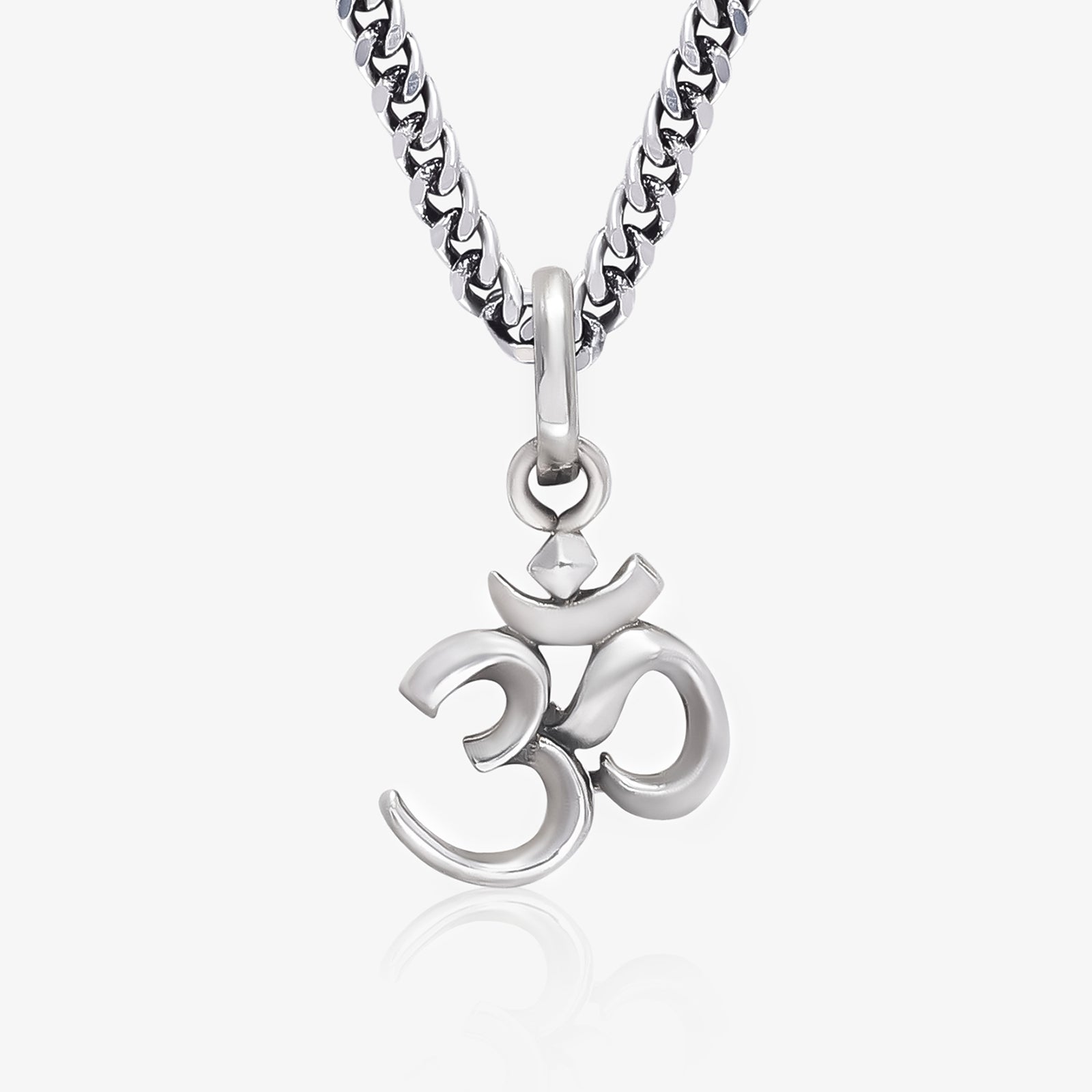 This Om pendant is made of silver based on beauty and spirituality. It is for those who are seeking peace within themselves and a connection with God. Rhodium plating gives it durability.