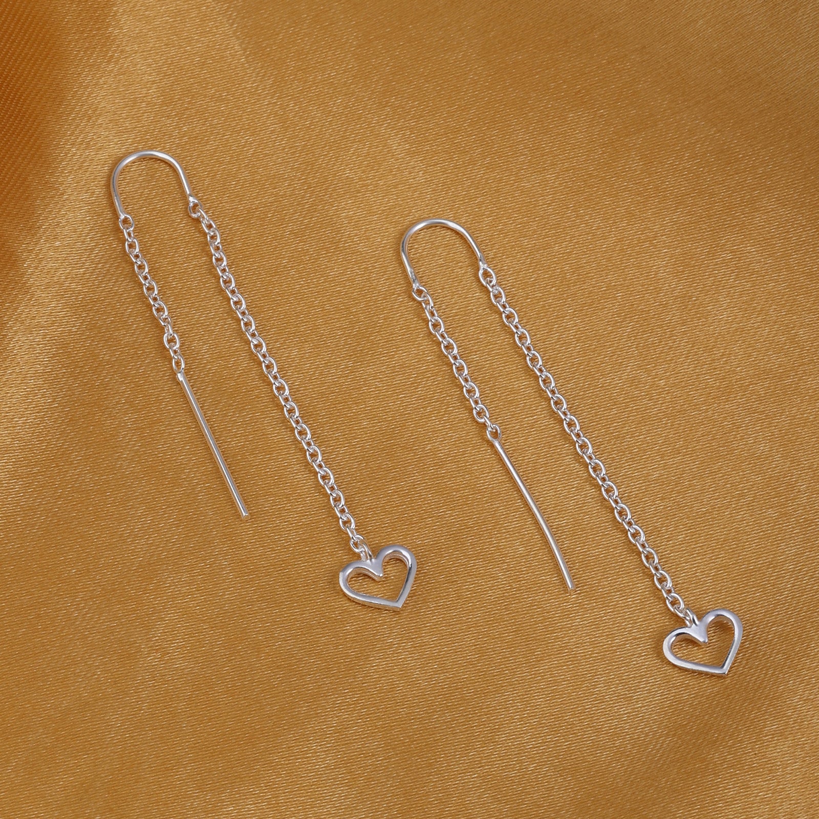 925 Sterling Silver Heart Design Long Chain Earrings have a lovely design with a modern look. The silver thread earrings feature a long thread rope chain with a heart-shaped frame at the end made of 925 sterling silver and plated with rhodium. Tweov designed these earrings for women to add a lovely heart-cut adornment to their ears and to a presence of eternal love. It is a heart that makes you feel connected with love and a thread that holds the ability to take your bond to eternity. Wearing this earring gives a sensible, cozy, lovely appeal that every woman deserves. Pair it with a saree, suit, midi, or any outfit for special or festive celebrations, such as outings, Raksha Bandhan, Diwali, Dhanteras, Bhai Dooj, and Onam. Give it to your loved one and glow with it every time you feel outdated.