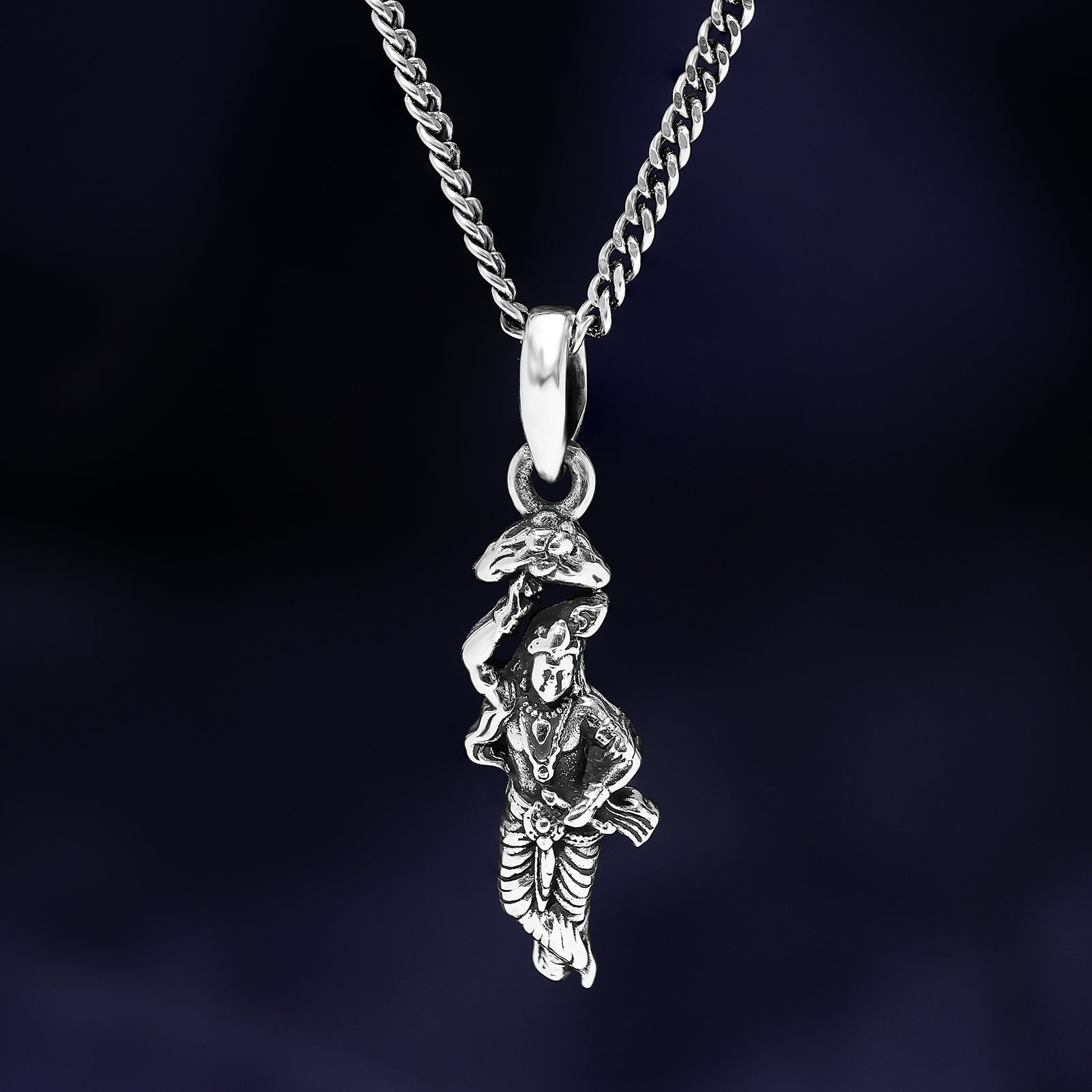 A pendant made of silver symbol of devotion and esteem will keep the most present form of Lord Krishna close to your heart. Crafted in premium sterling silver with an oxidized touch, it contained spiritual life and artistic craftsmanship.