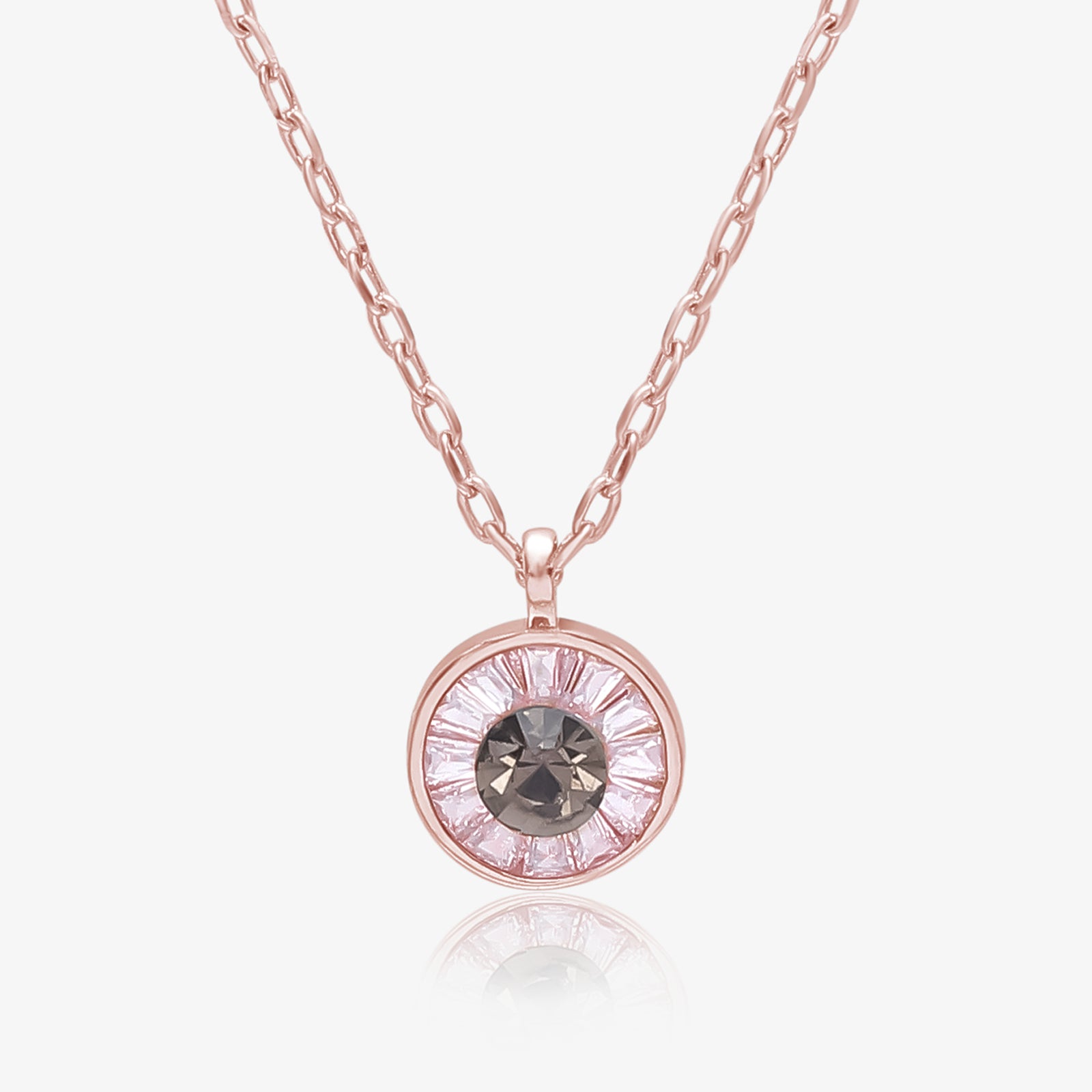 Rose Gold Plated Sea Green Stone Studded Chain Pendant is a unique design with a perfect combination of shiny, white cubic zirconia stone and light green CZ in the center of the circular rose gold plated silver frame, which is made of 925 sterling silver and plated with a rose gold finish. It features a rope-style chain along with a circular pendant full of high-quality stones that add an incredible shine to any casual attire.