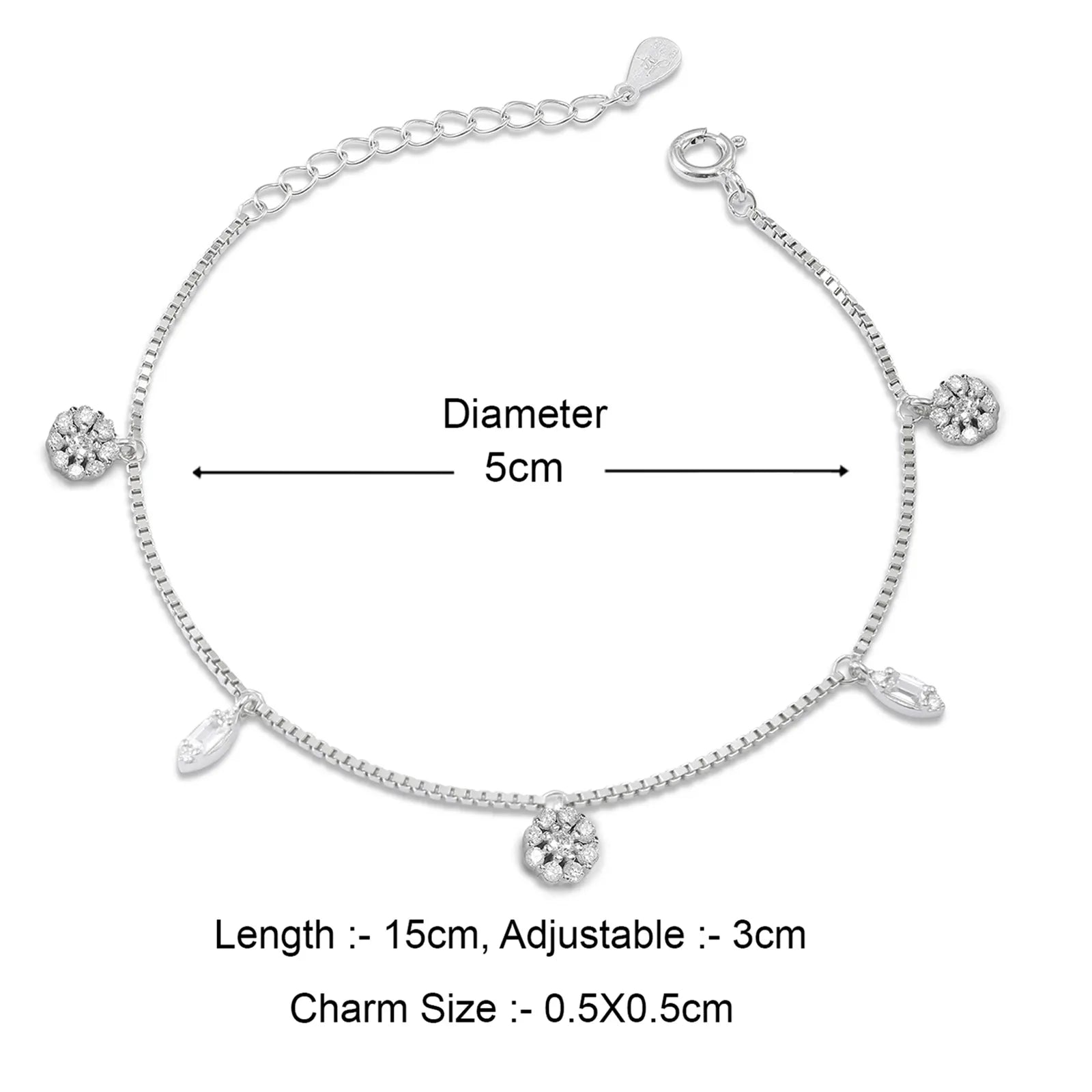 925 Sterling Silver Floral Leaf Bracelet for Women has a beautiful design inspired by a floral element. The silver bracelet features several white cubic zirconia stones adorned in three floral frames and two leaf-shaped frames set on a box chain and secured with a spring ring lock made of 925 sterling silver and plated with refined rhodium. Tweov designed this chain bracelet for women to make their wrists look sophisticated, artistic, and comfortable. You can style this bracelet in festive and special celebrations, such as traditional rituals, outings, Ganesh Chaturthi, Karwa Chauth, Diwali, Dhanteras, Bhai Dooj, and Onam, with a variety of outfits in modern, traditional, casual, or formal outfits. With this silver piece, you can spark the light of love in your joyous moment. Moreover, it is a perfect gift to show love.